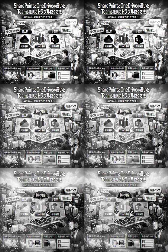 本記事では、sharepointとonedriveの役割の違いを、個人用と共有用、短期利用と長期保管、社内共有と社外共有という軸で整理し、teamsを含めた「1枚の地図」として提示します。その上で、onedrive同期とsharepointへのショートカット追加の違い、退職者onedriveからの引き継ぎ、サイト乱立を防ぐ設計、検索で確実に見つかる運用まで、現場で本当に問題になるポイントだけを抽出しています。