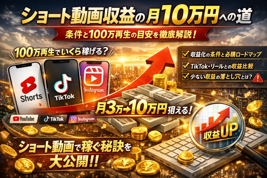 ショート動画収益はいくらになるのか分からないまま投稿を続けることは、時間と労力を静かに溶かしているのと同じです。多くの副業クリエイターや企業担当者が「100万再生でいくら?」「YouTubeショートだけで収益化できる?」と検索し続けても成果が出ないのは、広告収入だけを見て戦略を組んでいるからです。実際にはYouTubeショート収益化条件やショート動画収益化モジュールの仕組みを押さえたうえで、TikTokやInstagramリールとの拡散力や費用対効果を比較し、チャンネル登録や問い合わせにどうつなげるかまで設計しないと手元の現金は増えません。