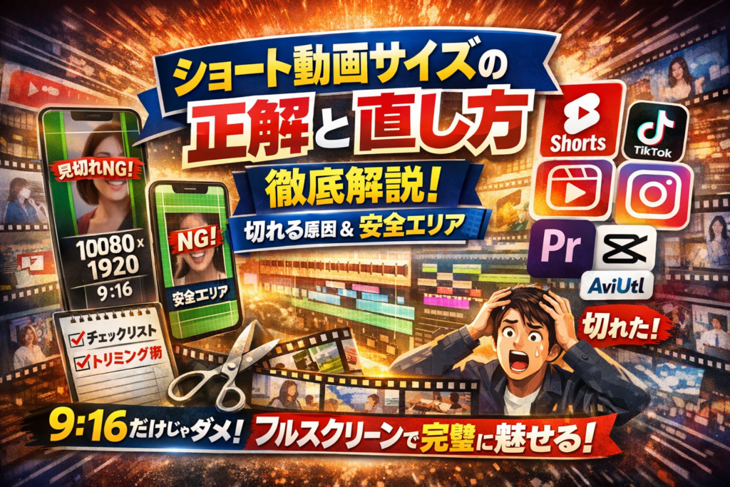 スマホで縦スクロールしているユーザーの「1秒の迷い」を奪えるかどうかは、内容より前にサイズ設計で8割決まります。ここを外すと、どれだけ凝った編集でも“なんか見づらい動画”で終わってしまいます。