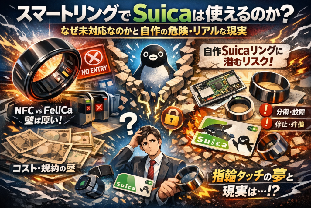 この記事では、スマートリングでSuicaがなぜ使えないのか、いつ・どんな条件なら実現し得るのかを、ハードウェア、ライセンス、ビジネスの3軸から具体的に解体します。そのうえで、自作Suicaリングや中華NFCリングの「甘いレビュー」の裏側にある故障・利用停止・弁償リスクを一次情報ベースで示し、iPhoneとAndroidそれぞれにとって現実的な組み合わせを、改札と決済を分けて提案します。
