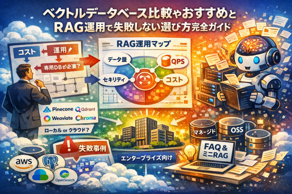 この記事では、ベクトルDBの種類やOSSとマネージドの違いをカタログ的に並べるのではなく、データ規模、QPS、セキュリティ、料金体系、運用体制という実務の軸から、PineconeやQdrantを含む選択肢とAWS環境の構成案を一枚のマップに落とし込みます。その結果として、「RAGにベクトルDBは必要ない」「専用DBがないと詰む」の境目まで具体的に判断できる状態になるはずです。