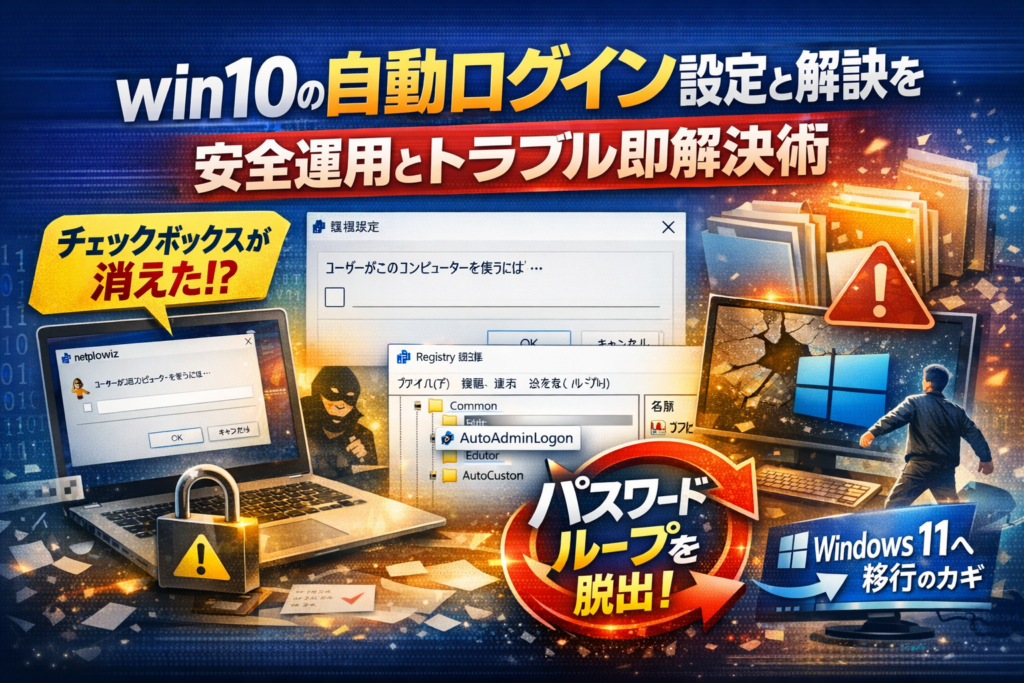 この「棚卸し」をしておけば、Windows11への移行時に、PasswordLess設定やAutoAdminLogonを冷静に選び直せます。自動ログインは便利な一手ですが、サポート終了前のこの時期こそ、次のOS世代へつながる“橋渡しの設定”として扱うかどうかを見極めることが重要です。