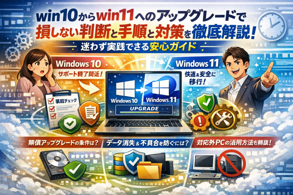 このガイドでは、単なる手順解説ではなく、「そもそもWindows11へアップグレードすべきか」「いつ・どの方法で実行するのが最も損をしないか」「アップグレードできない・不具合が出たときにどう出口を作るか」を、個人利用・副業フリーランス・小規模企業それぞれの立場から整理します。