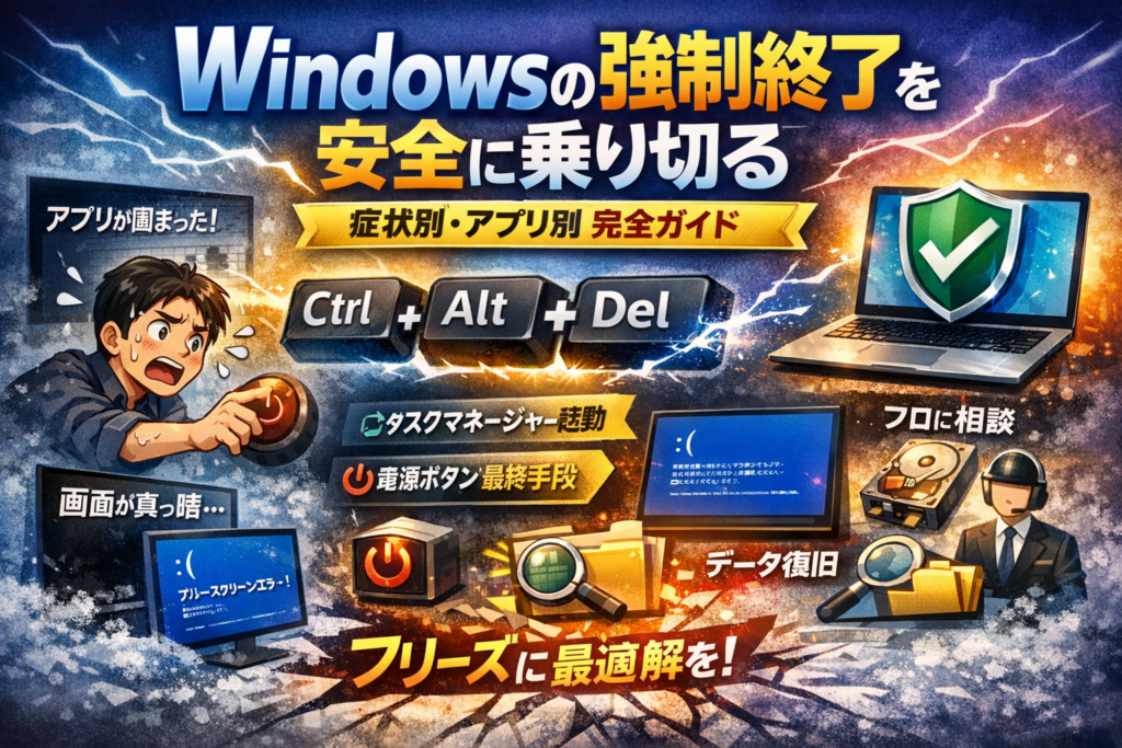 この記事では、現場で実際に判断に迷いやすかったパターンを洗い出し、できる限りデータと仕事を守りながらwindowsの強制終了を乗り切るための判断基準をまとめています。