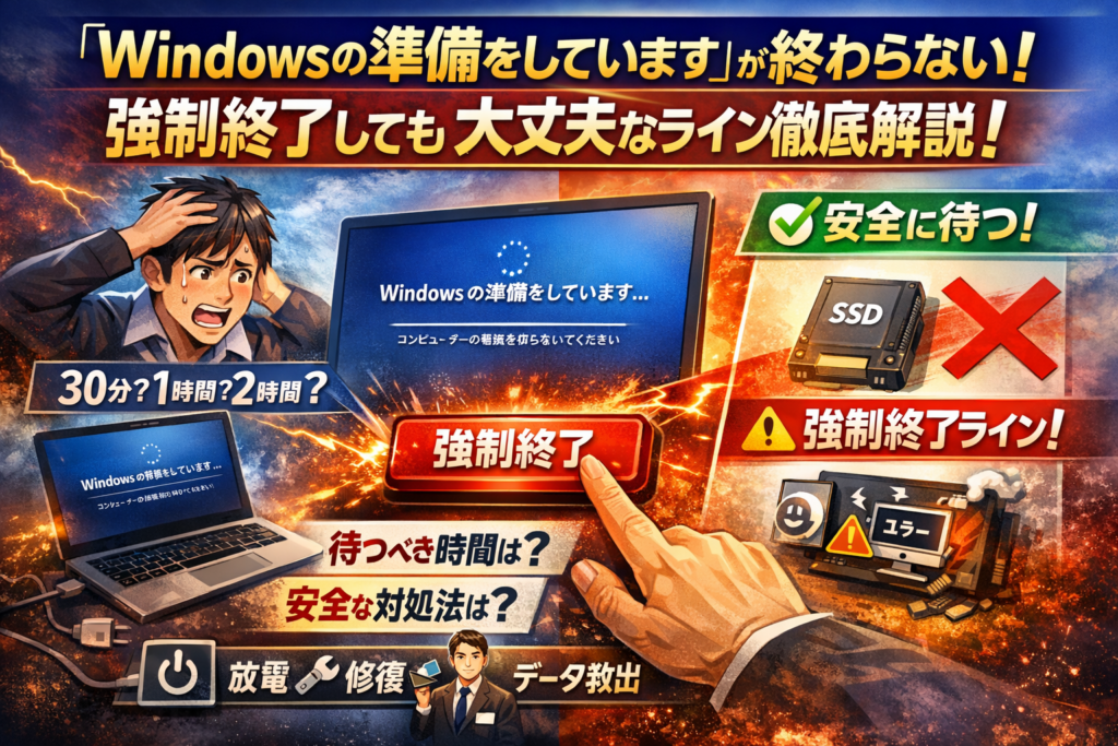 「windowsの準備をしています」から動かない画面を前に、顔色を変えた経営者や担当者を、ここ数年だけでも何百人と見てきました。締切直前の見積データや、二度と撮り直せない家族写真が入ったPCで、この表示が出るたびに、皆さん同じ問いを口にします。「あとどのくらい待てばいいのか」「今、電源を落として大丈夫なのか」。