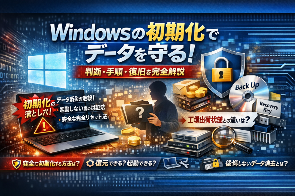 読み終えたときには、「どのPCをどのレベルまで消すか」「どの順番でバックアップと回復キーを確保するか」「失敗したときにどこまで復旧の余地を残せるか」を自分で判断できるようになります。この記事を読まずにwindows初期化を実行すること自体が、最初のリスクになるという前提で、実務目線の情報だけを厳選して解説していきます。