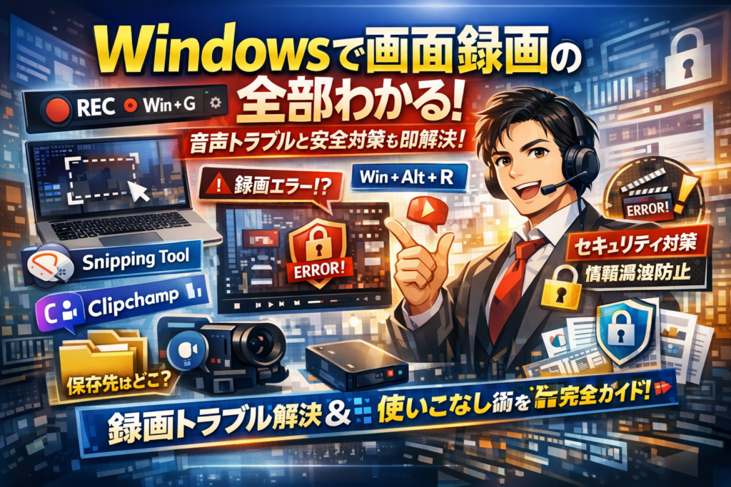 本記事は、Windows10とWindows11の標準機能だけで「今すぐ録る」ところから出発し、Xbox Game Bar、Snipping Tool、Clipchampを使った画面録画の具体的なやり方、ショートカット、保存先、内部音声のみやマイク音声付きの設定までを一気通貫で整理します。さらに「ゲーム機能を使用できません」「現在録画できません」といったエラーの原因と現場でのチェックポイント、会社PCで録画が禁止されているケースの見極め方も押さえます。