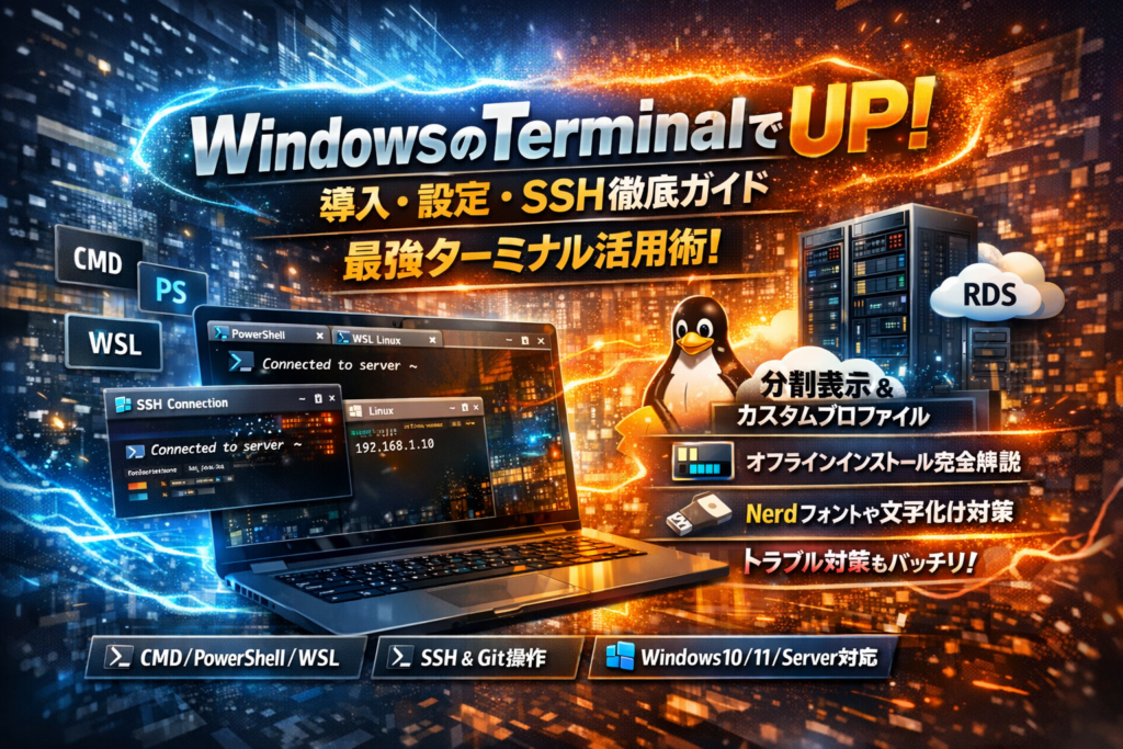 単なる機能紹介ではなく、企業環境でwindows terminal インストールがブロックされるケース、Windows11で既定ターミナルが変わって「Windowsターミナル ない」「勝手に起動」と見える理由、Nerd Fontsや日本語フォントで文字化けする実例、Windows Server2019/2022への配備とRDS環境の管理など、現場で実際に起きている問題を起点に解説します。
