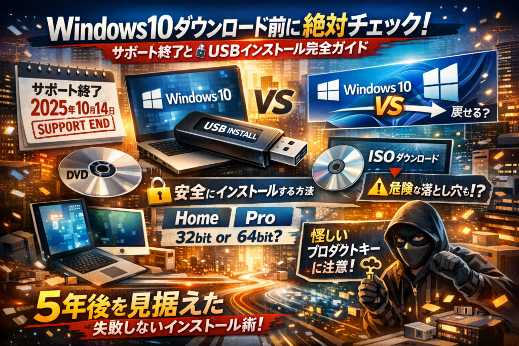 この記事では、まず「今あえてwindows10をダウンロードするべきか」をサポート終了の現実とWindows11との比較から線引きします。そのうえで、Microsoft公式ISOの正規ルート、USBインストールメディア作成、古いPCやmacへの導入、ダウンロードが遅い・失敗する原因の切り分けまで、実務で必要な手順だけを整理しています。