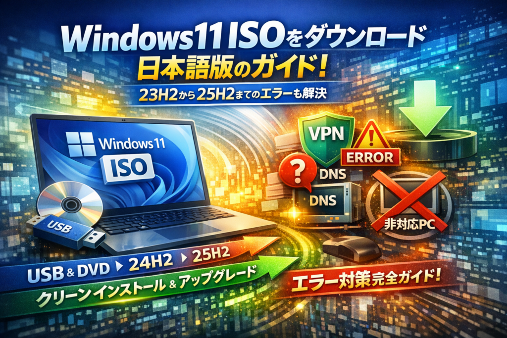本記事では、Microsoft公式からの安全なwindows11 iso 日本語版の取り方と、メディア作成ツールを含むインストールメディア作成、クリーンインストールとアップグレードの使い分け、23H2/24H2/25H2それぞれの手動ダウンロードとアップデート戦略を一気に整理します。さらに、VPNやDNSフィルタが原因のダウンロード失敗、USBフォーマットの詰み、日本語化と言語パックの落とし穴、非対応PCへのインストールリスクまで、実務で頻発するトラブルを原因別に潰すロジックを提示します。この記事を読み進めれば、「どこから・どのISOを・どう使えば業務に耐える日本語環境が安定して回るのか」が一本線でつながります。