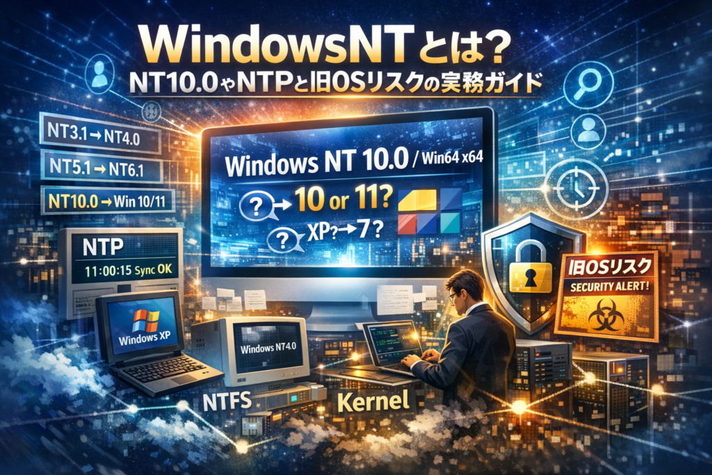 本記事では、NT3.1からNT10.0までのバージョン対応表や9x系との違いを整理しつつ、「Windows NT6.1は実際は7なのか」「NT10.0は10か11か」といったUser-Agentの読み解き方、WindowsのNTPサーバ設定と時刻同期の確認ポイントを、情シス兼務の担当者やWebマーケ担当の視点で具体的に扱います。さらに、XPや7など旧NT系OSを現役で使い続けるリスクと、段階的な入れ替え戦略まで一気に俯瞰できます。OSの歴史を知る記事ではなく、自社のPC環境とWeb施策の精度を同時に底上げするための実務ガイドとして読み進めてください。