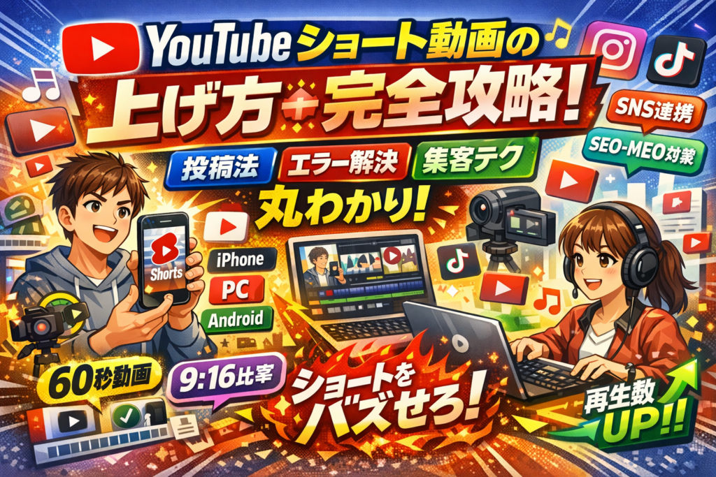 YouTubeショートの相談を受けていると、「撮ってはいるのにショート扱いにならない」「投稿で固まる」「音楽が消える」「せっかくバズったのに店舗やサービスへの導線がない」という声が、業種を問わず繰り返し届きます。私自身、自社の集客や採用で動画を使い始めた頃、スマホでは投稿できるのにPCからだとショートにならず、原因が分からないまま数日ロスした経験があります。ローカルビジネスの現場でも、秒数やアスペクト比のわずかな違いでアップロードエラーが続き、繁忙期の来店チャンスを逃してしまったケースを何度も見てきました。SEOやMEO、Instagramと組み合わせれば安定した集客装置になる一方、投稿方法や権利の理解を間違えるとチャンネル自体が止まる危険もあります。このギャップを埋めるため、実務で使っているチェックリストや導線設計の考え方を整理し、今日中に1本を安全に上げて売上につなげたい方が迷わない形でまとめました。