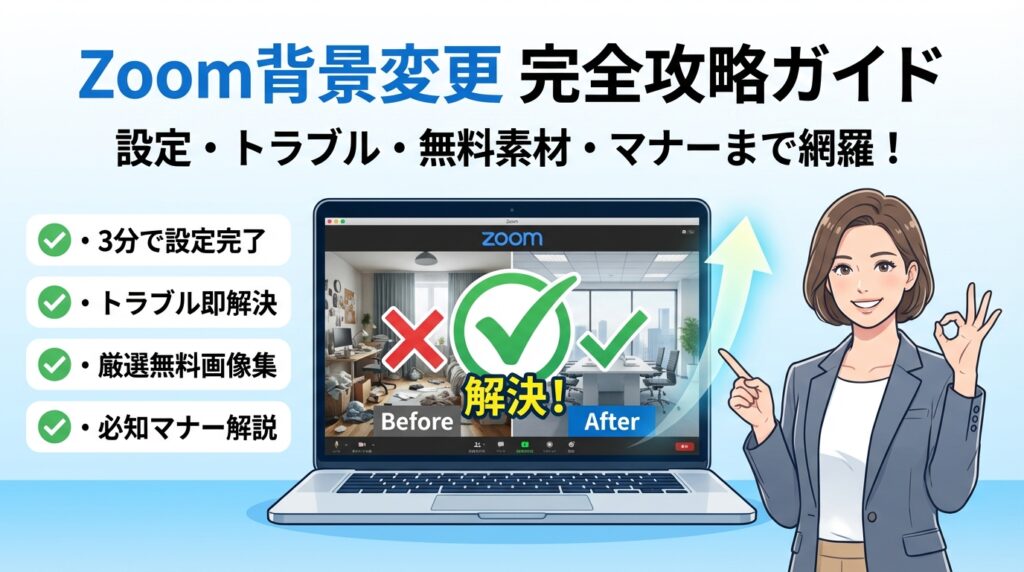 本記事は、パソコンとスマホの最短手順で背景変更を終わらせること、背景ぼかしやバーチャル背景が出てこない原因を一度で潰すことを軸に、対応機種の早見表、AndroidやiPadの制限、無料で安全に使えるZoom背景画像の選び方まで一気通貫で整理します。さらに、ビジネス会議やオンライン面接、授業、飲み会それぞれで「一発アウトな背景」と「即戦力の背景」を具体的に示し、カメラ位置や照明、服装も含めた画面設計まで踏み込みます。この記事を読み終える頃には、「とりあえず隠す背景」から「仕事の成果を後押しする画面」へ、今日この瞬間から切り替えられます。