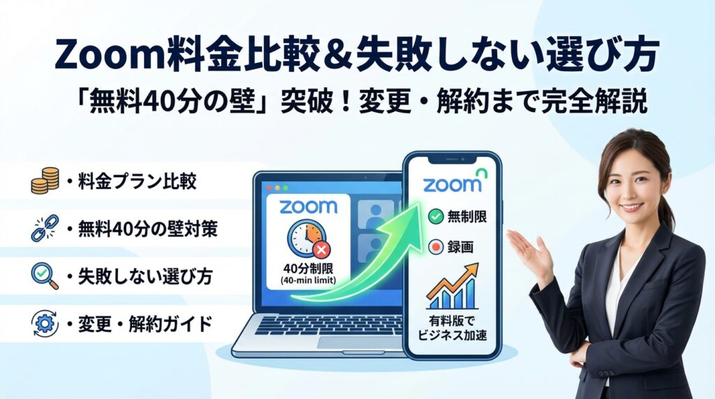 Zoomの無料プランで商談や会議を回しながら、「40分で切れるのは不便だけど、まだ有料化は早い」と判断していないでしょうか。実務の現場では、この判断ミスが信用低下や取りこぼしにつながり、毎月のZoom料金よりはるかに大きな損失を生んでいます。本記事は、単なる料金表や機能一覧ではなく、「今の使い方なら、どのzoomプランをどの人数で契約するのが最小コストか」を具体的なシナリオから割り出せるように設計しています。